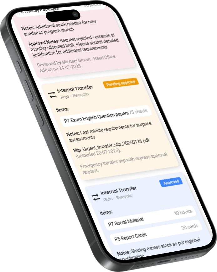 Users can track stock in real-time, manage inter-branch transfers, and receive low-stock alerts.